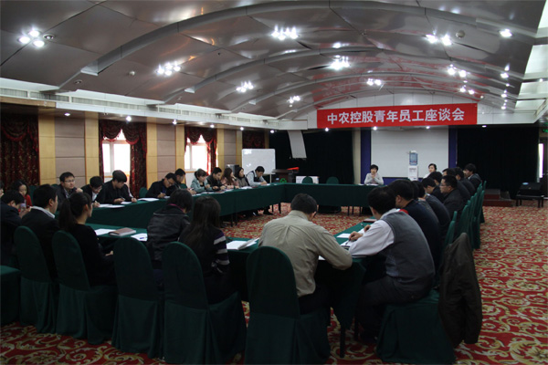 为听取青年员工对公司发展的意见和建议,了解青年员工职业发展中的想法和困难,中农控股于2010年11月3日下午2:00在公司东四楼会议室召开青年员工座谈会,受公司领导委托,由人力资源部经理王宝清主持本次会议,公司33名在京青年员工参加了本次会议。