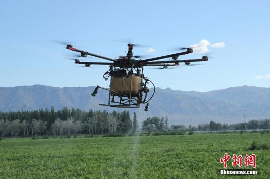 这两天:新疆农民利用高科技产品飞机对农作物开展空中喷洒农药。飞机防治所需药量比地面防治减少20%,在减少浪费的同时,也将减少土地药物残留,减轻土壤污染。哈那提 摄